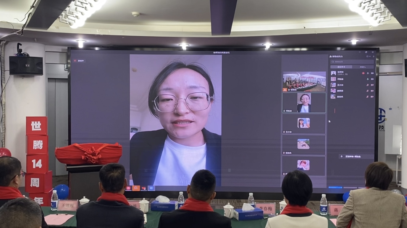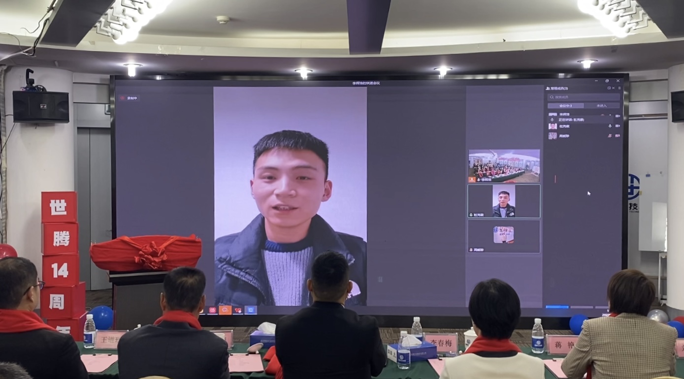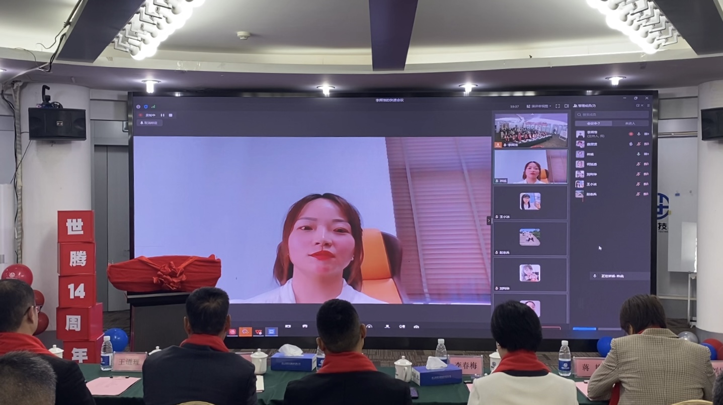 十四年的風(fēng)雨同行,離不開每一位世騰家人的堅守初心與支持陪伴,本次慶典“世騰年度之星”環(huán)節(jié),邀請到了自世騰成立以來歷年入職的優(yōu)秀員工代表進(jìn)行發(fā)言,各位戰(zhàn)區(qū)同事以線上連線的形式給我們分享自己眼中的世騰。每一位分享者的發(fā)言令人動容,大家回顧了一路走來的點滴與不易,沒有兩位創(chuàng)始人的堅定指引,沒有每一位世騰人的奉獻(xiàn)與堅持,就沒有世騰今天的發(fā)展。大家在世騰這個平臺上實現(xiàn)了自己的夢想,都為成為一名世騰人感到無限驕傲。